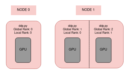 $ torchrun --nproc_per_node=1 --nnodes=2 --node_rank=0 --rdzv_id=456 --rdzv_backend=c10d